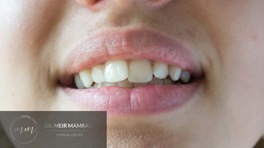- שן קדמית עקומה או מסובבת, שגורמת למראה חיוך פחות אסתטי.